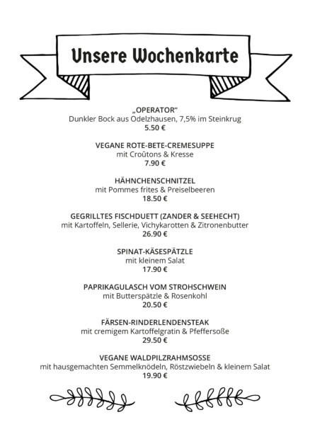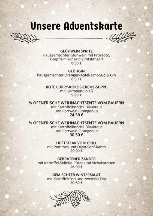 Für alle, die besondere Ernährungswünsche haben, bieten wir auf unserer Karte vegan– und glutenfreie Optionen an, damit jeder Gast sich rundum wohlfühlen kann. Ganz gleich, ob Sie Fleischliebhaber oder Vegetarier sind, bei uns finden Sie köstliche Gerichte, die keine Wünsche offenlassen. Natürlich kommen auch Liebhaber von bayerischen Bieren und erlesenen Weinen nicht zu kurz.